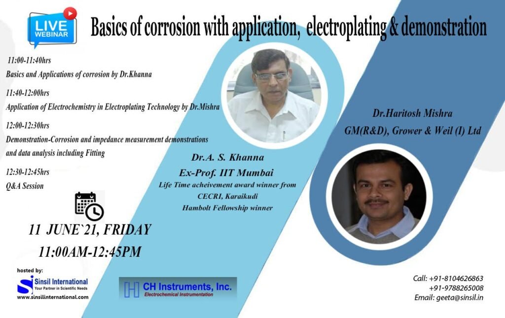 Sinsil International Pvt. Ltd. welcomes you to join in a special webinar on Basics of Corrosion with electroplating & demonstration (11 JUNE 2021, FRIDAY, 11:00AM IST).