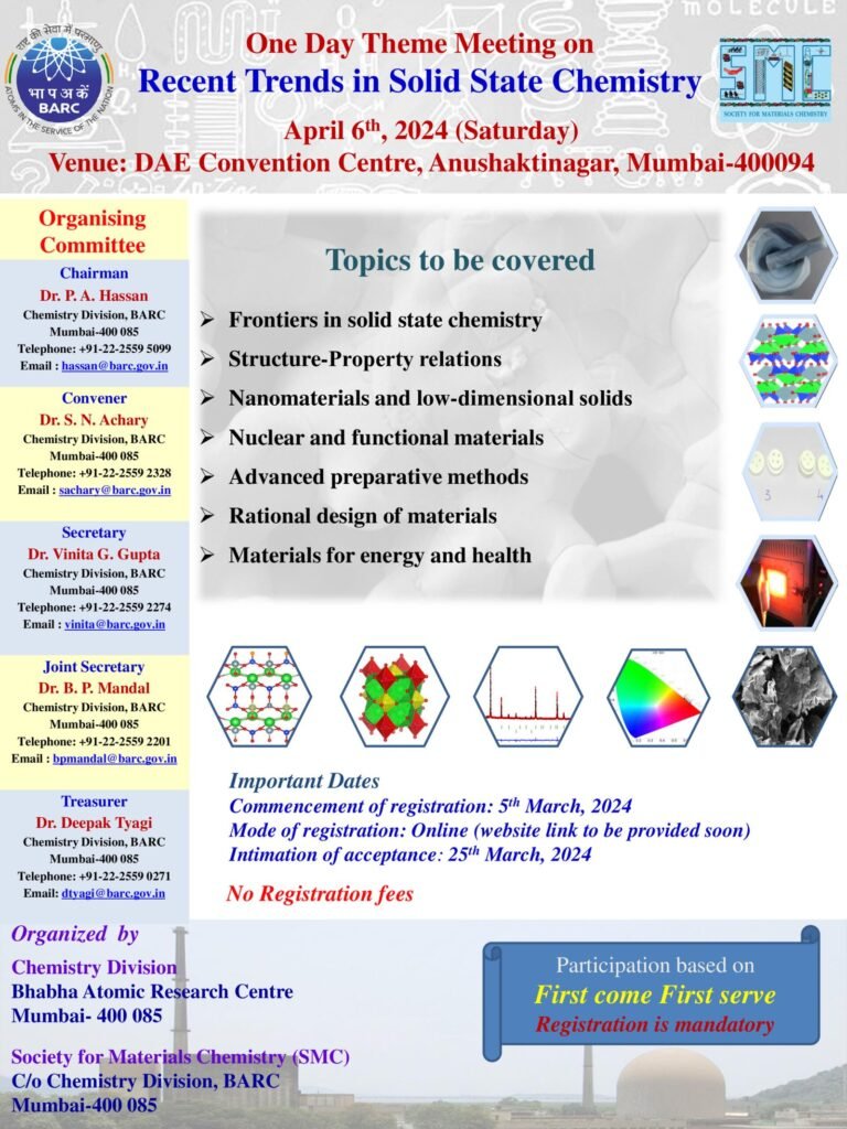 A DAE-BRNS sponsored Two-Day Theme Meeting on ‘Nuclear Probes for Materials, Medicine and Industry (NPMMI-2024)‘ is being organized Radiochemistry & Isotope Group of BARC in association with Society for Positron Annihilation and Nuclear Probes (SPAN). C/o. RCD, BARC during June 07-08,2024 at DAE Convention Centre, Anushaktinagar, Mumbai-400094. The objective of NPMMI-2024 is to provide a platform […]