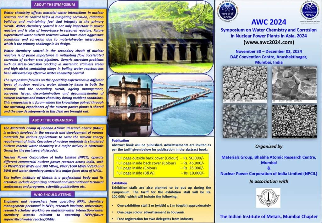 The participants of the symposium will be engineers and researchers from various Asian countries in addition to the participants from India from operating nuclear power plants (NPPs), chemistry management personnel in NPPs, research institute, universities, research scholars working on material-water interaction/water chemistry aspects relevant to operating NPPs/future supercritical water reactor/SMRs. An abstract book will be […]